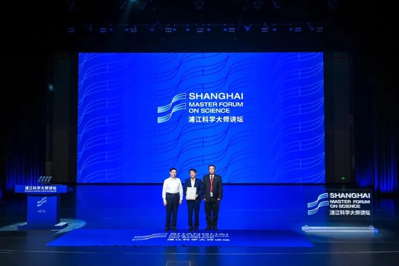Wu Xinbao, vice chairman of the Shanghai Municipal Committee of the Chinese People's Political Consultative Conference, presented Xue with the forum's speaker certificate. The event was chaired by Jin Li, president of Fudan University and academician at the Chinese Academy of Sciences.